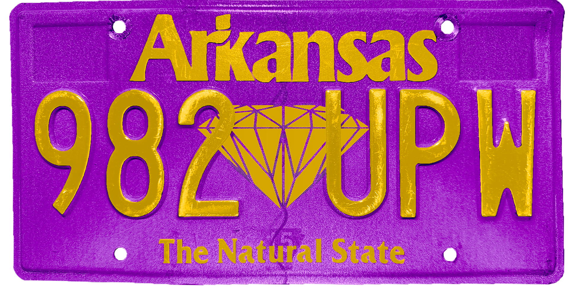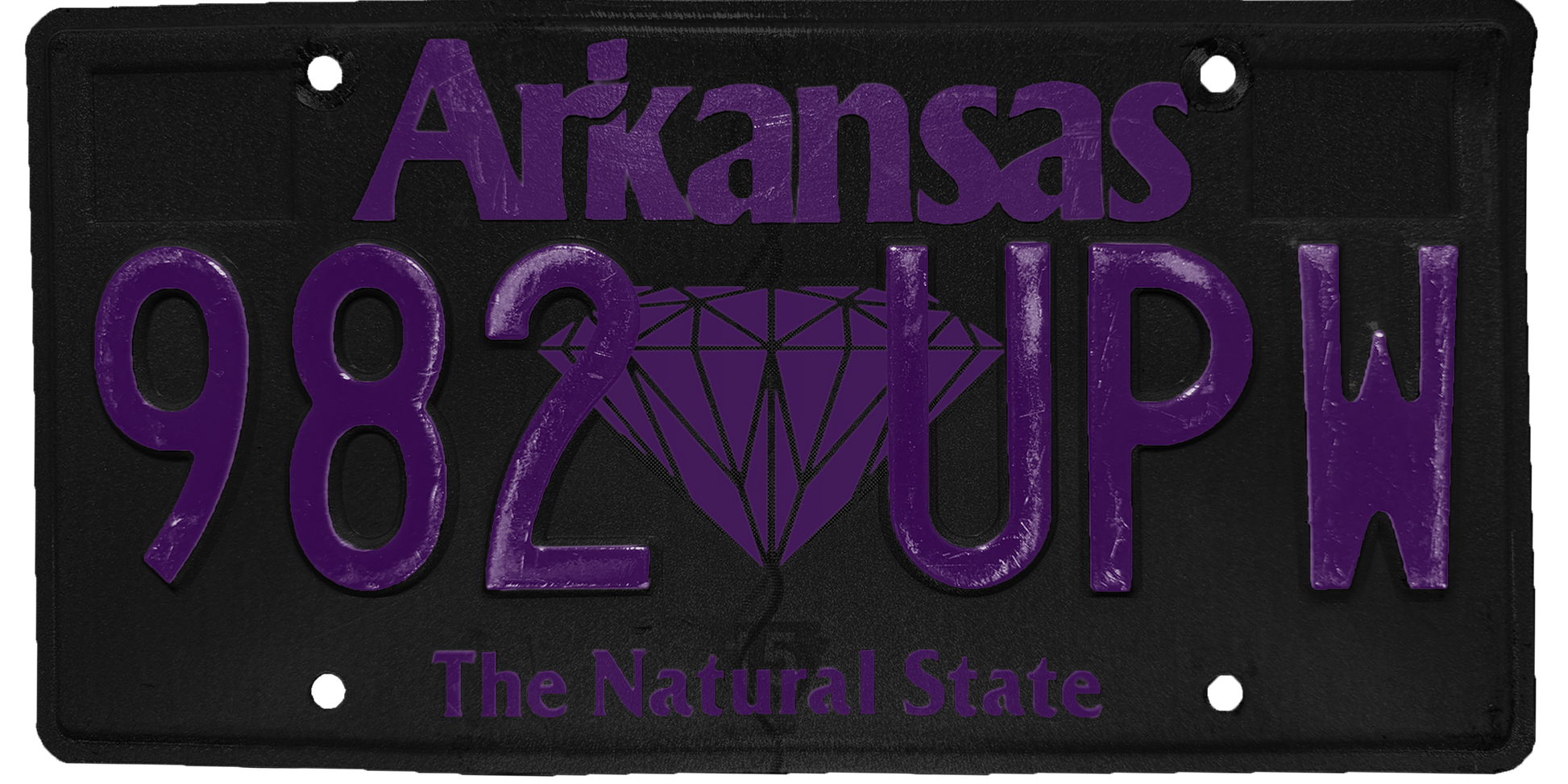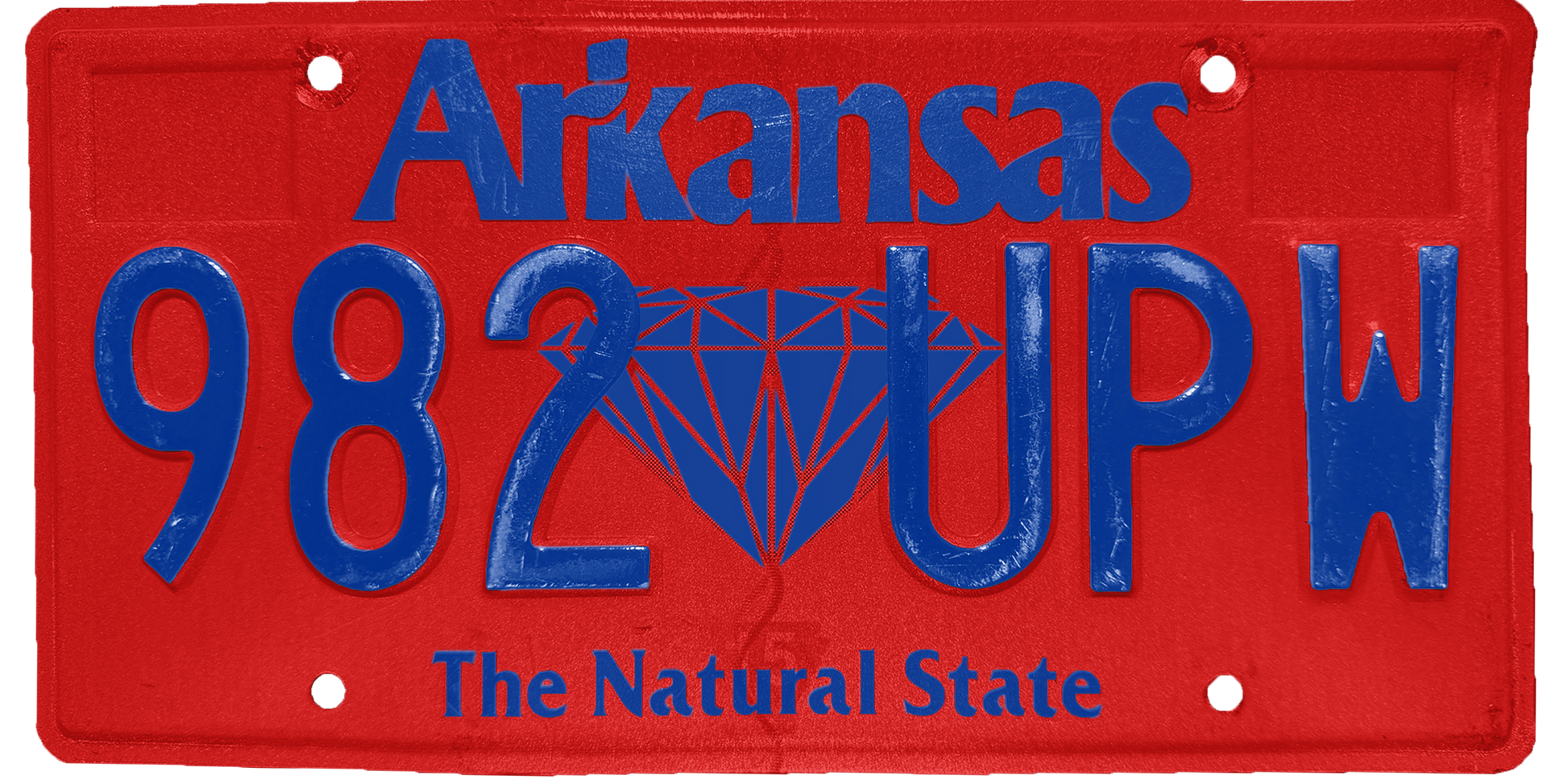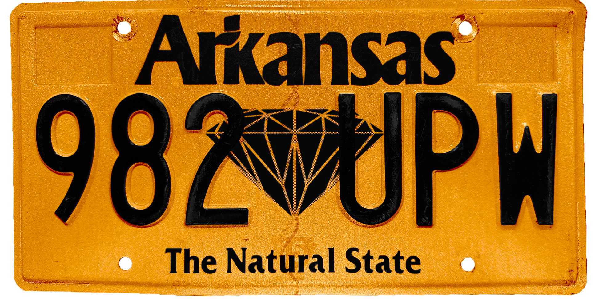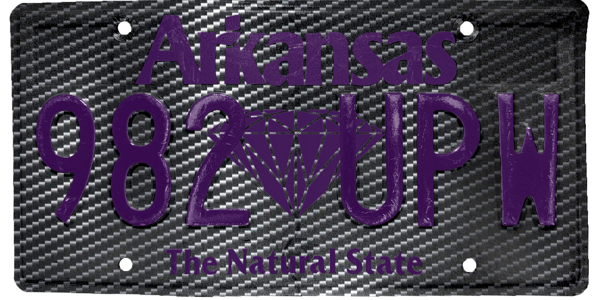 Customize your license plate with the popular black and white Arkansas license plate wrap kit style, or the popular legacy Arkansas black and yellow license plate wrap.