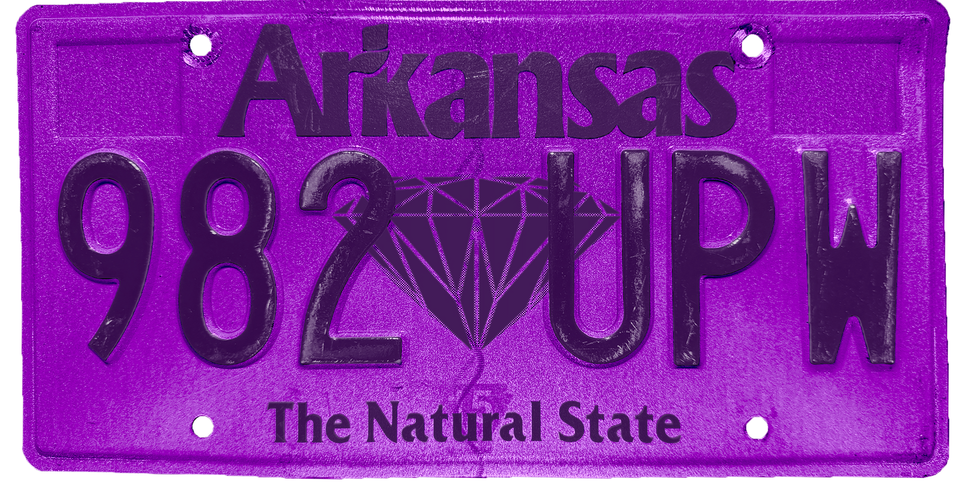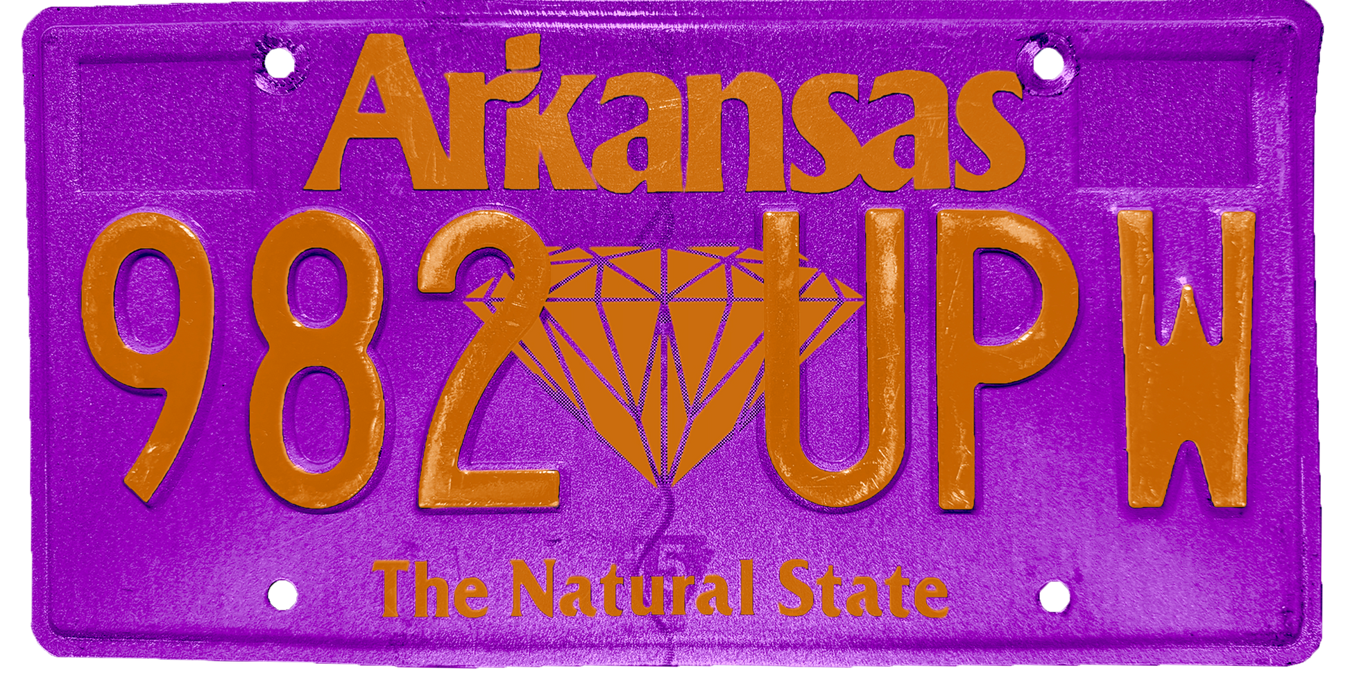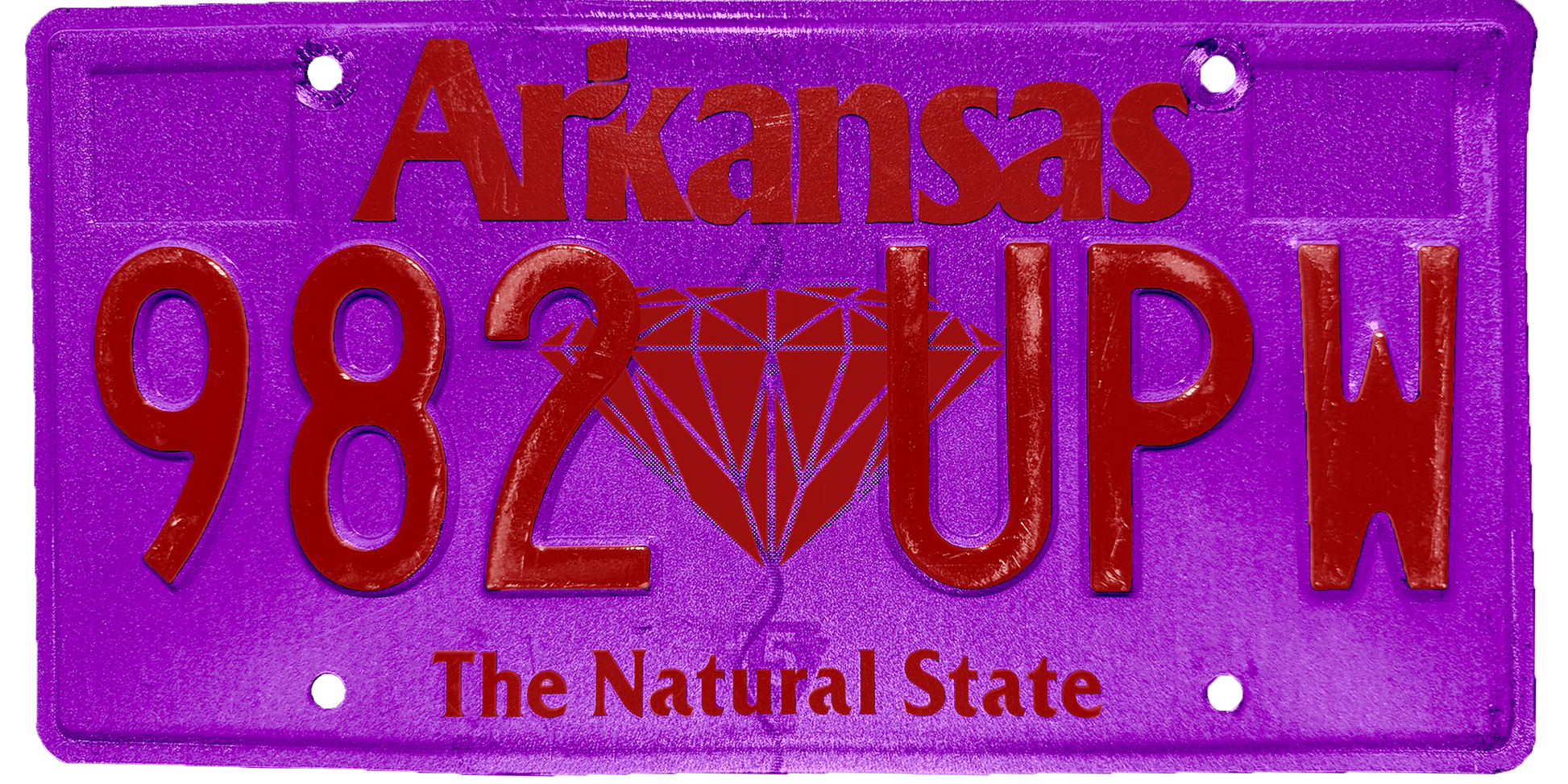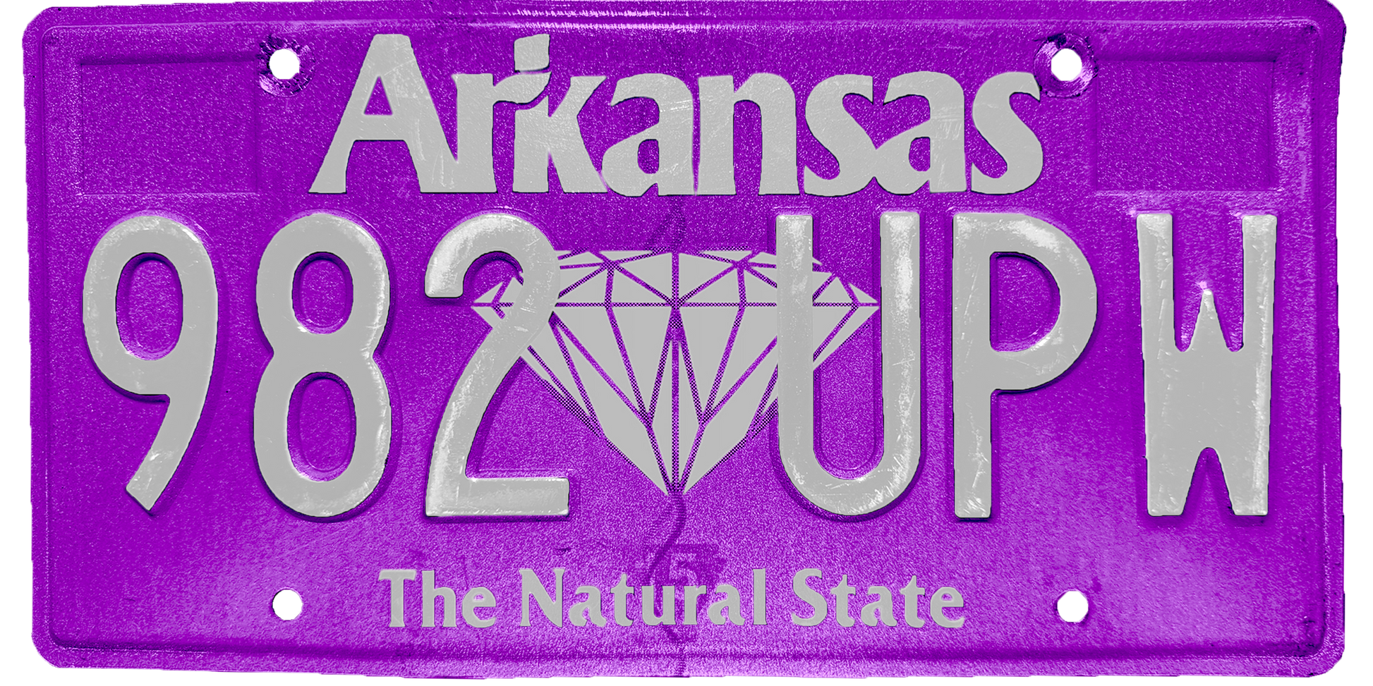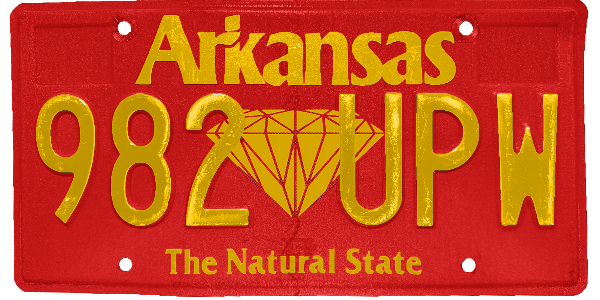 Customize your license plate with the popular black and white Arkansas license plate wrap kit style, or the popular legacy Arkansas black and yellow license plate wrap.
