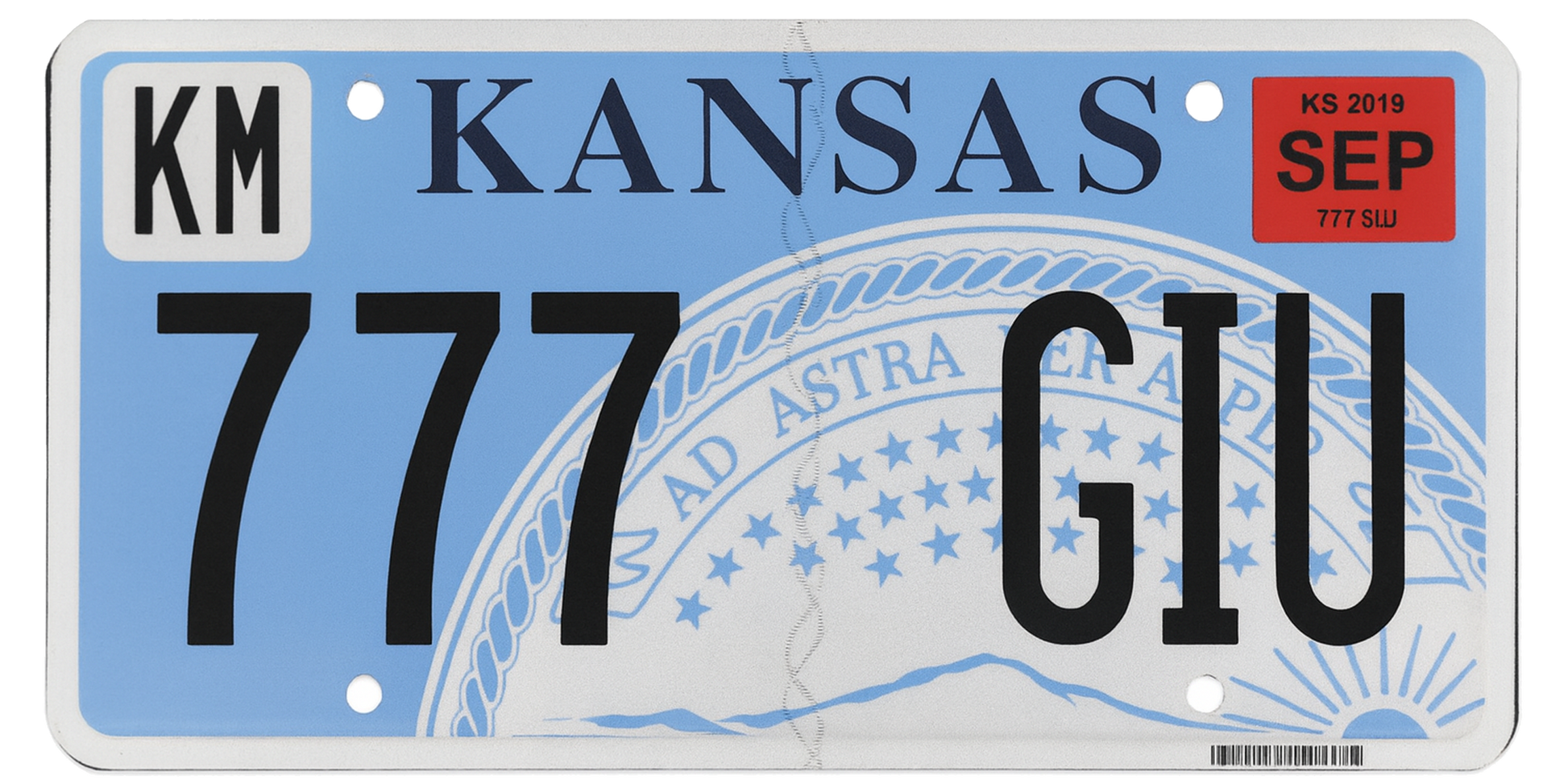 Customize your license plate with the popular black and white Kansas license plate wrap kit style, or the popular legacy Kansas black and yellow license plate wrap.