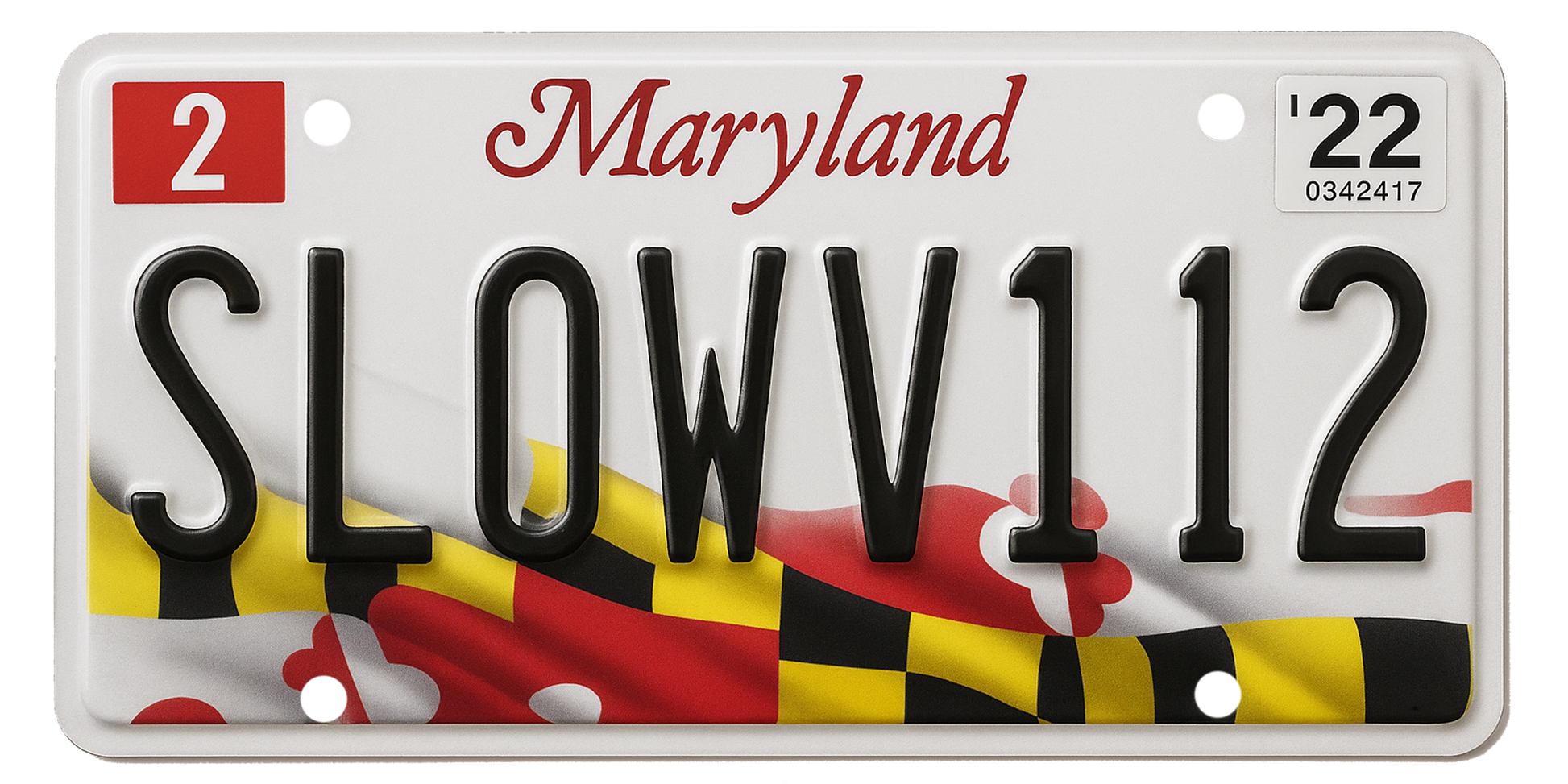 Customize your license plate with the popular black and white Maryland license plate wrap kit style, or the popular legacy Maryland black and yellow license plate wrap.